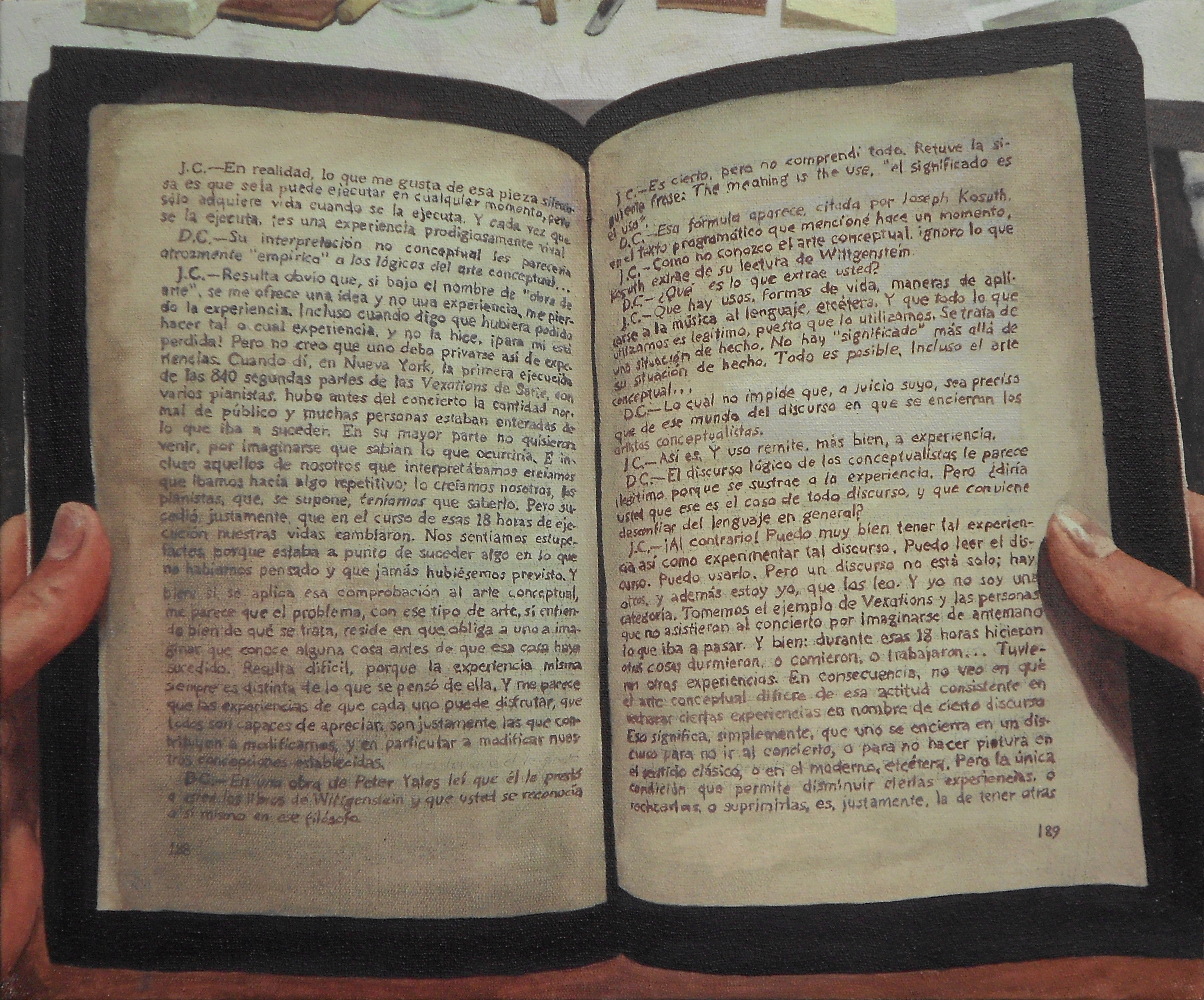 «Cage deviene libro», 2012, acrílico sobre tela, 50×60 cm.