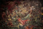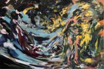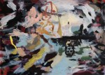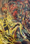 No son sólo los fantasmas del pasado. La obra obliga a interactuar con ella en la creación, busca esa materialización corpórea y es un momento en el presente como afirmación del porvenir. Las imágenes establecen una relación desde lo imperceptible, sus micro elementos desencadenan consecuencias que dan sentido a cada una de las piezas. El trazo no siempre está calculado, se libera de la intencionalidad y es a veces un franco retroceso: una marcha atrás en busca de automatismos, estados oníricos o a la reminiscencia infantil. Julián Madero exorciza pinturas icónicas y combina simultáneamente retratos con paisajes. Avanza y luego cambia de dirección como en persecución de la fugacidad. La sala se llena de fantasmas del futuro, de los anhelos de una plástica en desarrollo. Los trazos dan evidencia de velocidad. El interés pictórico en el caos de lo primario.