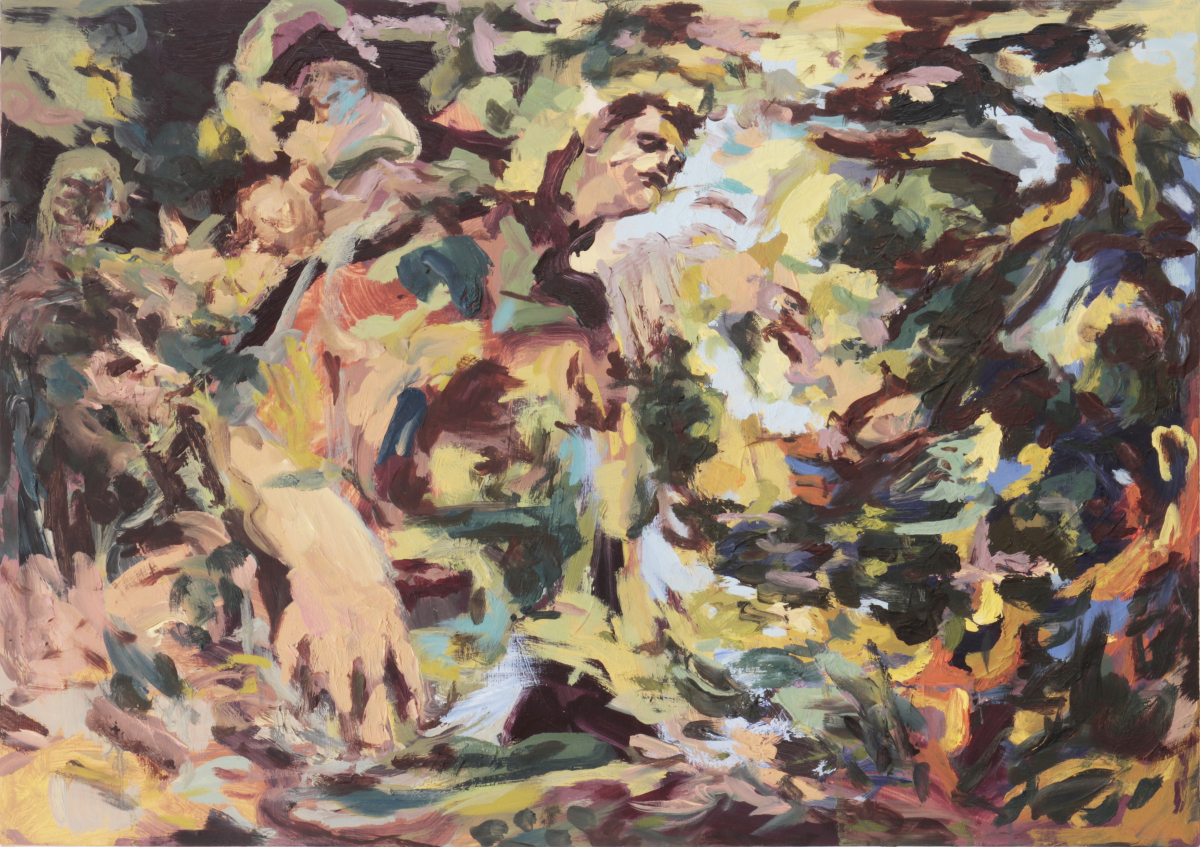 Hay huellas de los senderos recorridos. Hay figuras evidentes y legibles en su trazo, hay iconografías y composición. Las escenas cotidianas son interpretadas desde diversos niveles de distancia; diferentes puntos de observación de los hechos que se van sobreponiendo. La “mirada desconfía de la mirada”, por que mirar sólo con unos ojos no es suficiente.